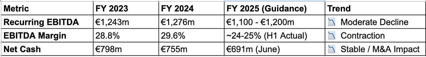 Management claimed the performance was distorted, but let's test that hypothesis. If we add back every single excuse and every Euro (€14M total), the normalized margin was still 24.7%, which is 200 basis points lower than the previous year (26.7%). This calculation proves that the "one-offs" accounted for only a tiny fraction of the drop. The remaining 2.0% decline came from core business issues: negative operating leverage and the end of pricing power in the US. The full-year results justified our skepticism. The structural compression was real. However, we have to give them credit: despite the headwinds, they managed costs well enough in the second half to hit the top end of their guidance.