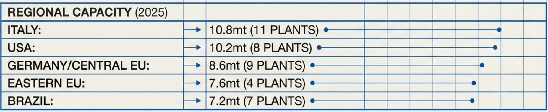 Strategy Shift: Mexico remains the group’s “cash cow,” but the strategy is shifting from pure volume to vertical integration. Through the Moctezuma JV, Buzzi is expanding its footprint in the West (aggregates/crushing).